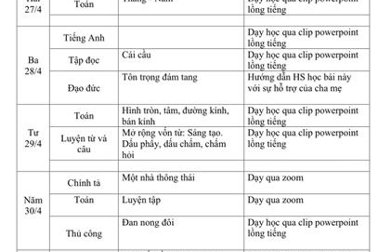 Nhà trường kính gửi quý phụ huynh thời khóa biểu và phân phối chương trình học trực tuyến tuần 21 + 22 ( từ ngày 20/ 04 / 2020 - 02/ 05/ 2020) của các con học sinh trong thời gian nghỉ ở nhà phòng dịch.