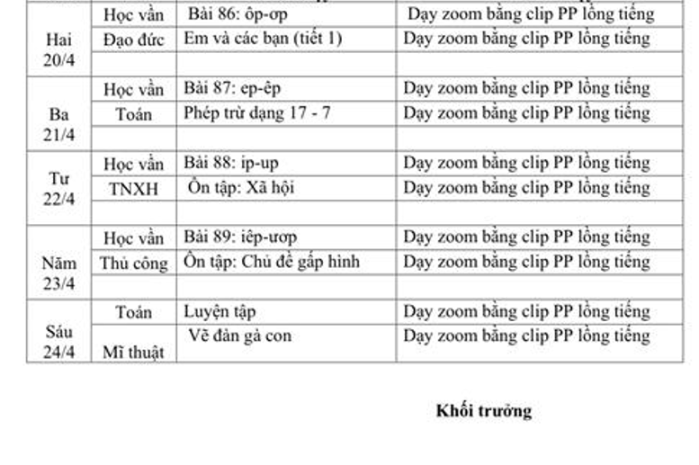 THỜI KHÓA BIỂU HỌC TRỰC TUYẾN TUẦN 21 + 22