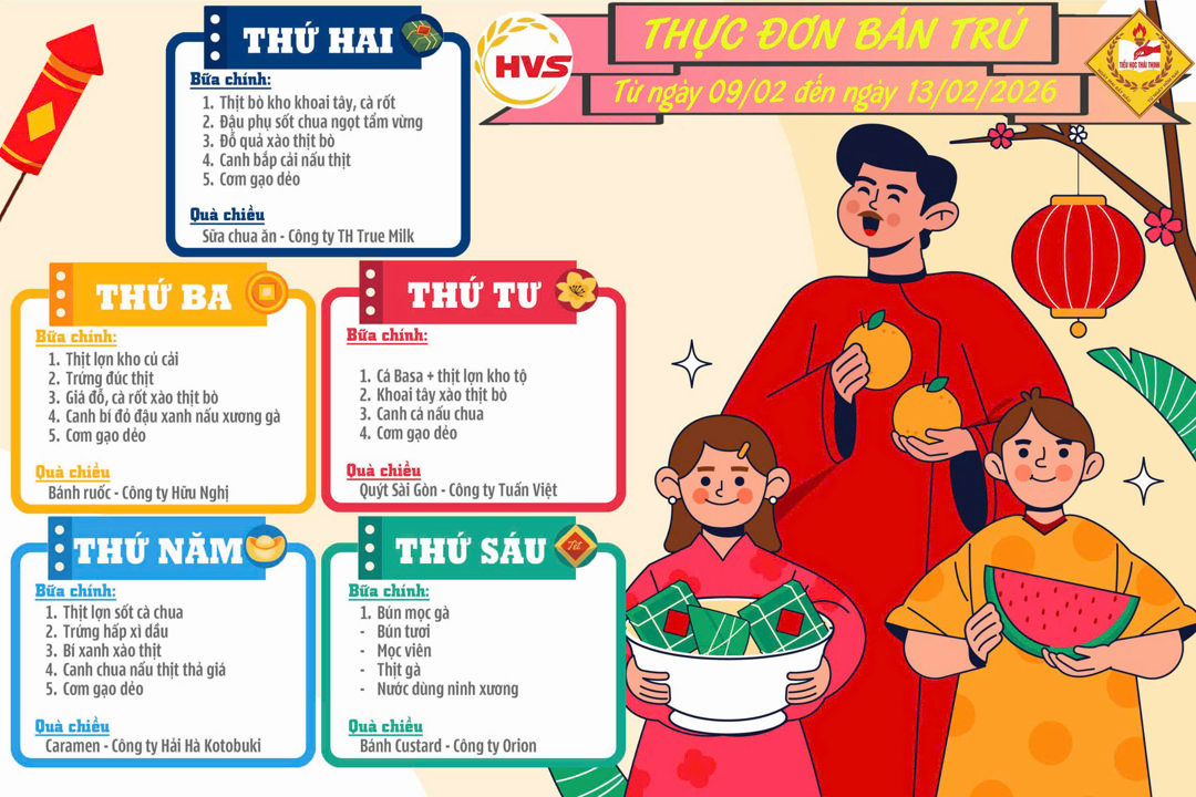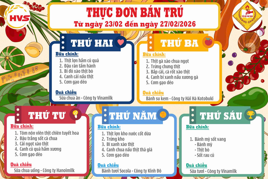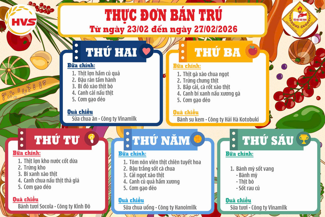 Thực đơn bán trú từ ngày 09/ 02 đến 27/02/2026
