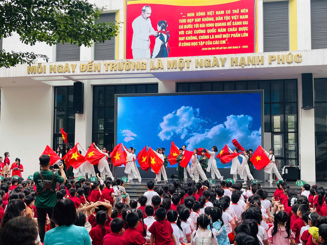 Hướng đến Kỷ niệm 50 năm Ngày Giải phóng miền Nam, thống nhất đất nước (30.4.1975 - 30.4.2025) và Ngày Quốc tế Lao động (1.5.2025), các trường học tại TP. Hà Nội đã trang hoàng cờ hoa rực rỡ, tổ chức nhiều hoạt động, cuộc thi ý nghĩa, cho học sinh giao lưu và tìm hiểu về lịch sử dân tộc
